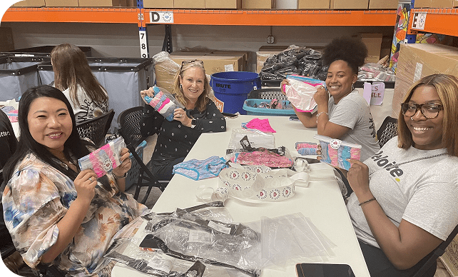Undies for Change enables companies to host your next team-building day into a powerful act of community care. Through our Undies for Change program, companies host volunteer events where employees roll, and pack underwear for children in need across Phoenix and Mesa.